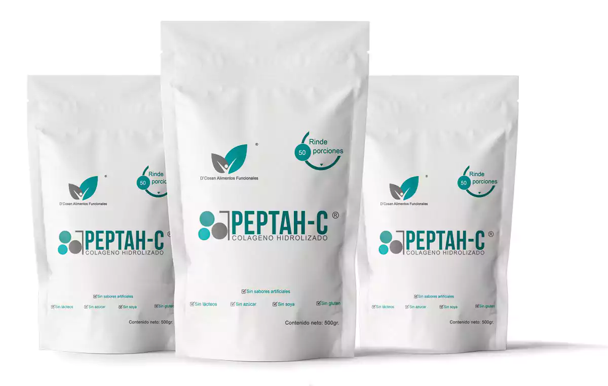 Peptah-C® es un alimento en polvo, que solo contiene proteína de colágeno hidrolizado por via enzimática, tipo I,con una pureza de 97%, en base seca.